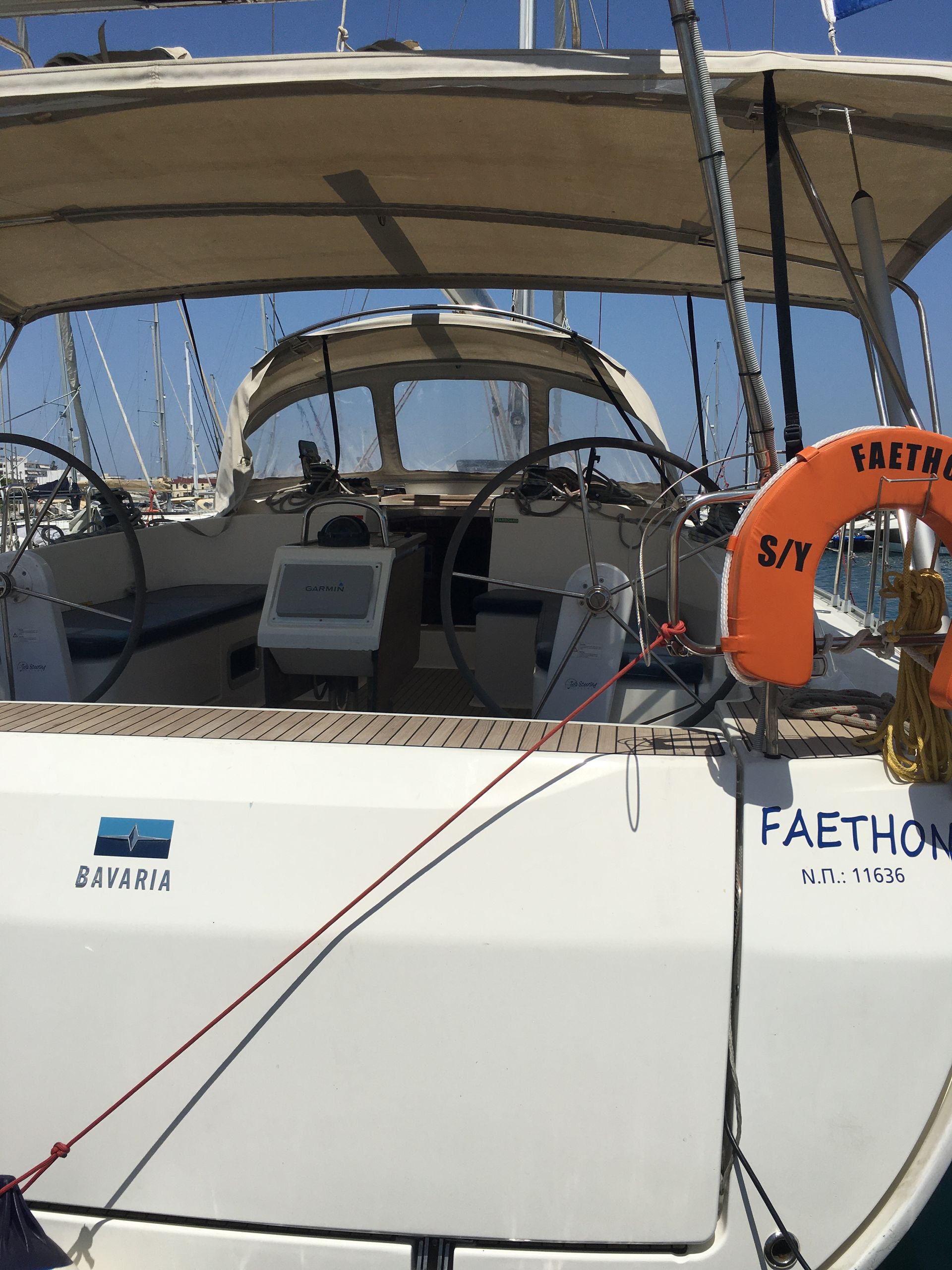 Teak vloer and -banken in cockpit